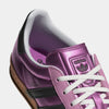 Originally intended for indoor athletes, the adidas Gazelle shoes have become an icon of style. This version of the Gazelle Indoor Shoes is crafted with a metallic leather upper, making them a fresh take on traditional design. The rubber outsole provides all-day comfort and the synthetic and textile lining keeps your feet feeling good. With their '70s-inspired design, they bring retro flair to any outfit.