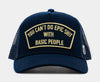 Introducing Cult of Individuality, where ordinary is never an option. Our Mesh Trucker Cap, crafted from durable wool acrylic fabric in sleek navy with a top-stitched logo embroidery patch, embodies our ethos: "You can't do epic shit with basic people." Join the movement, stand out, and make your mark with Cult of Individuality.