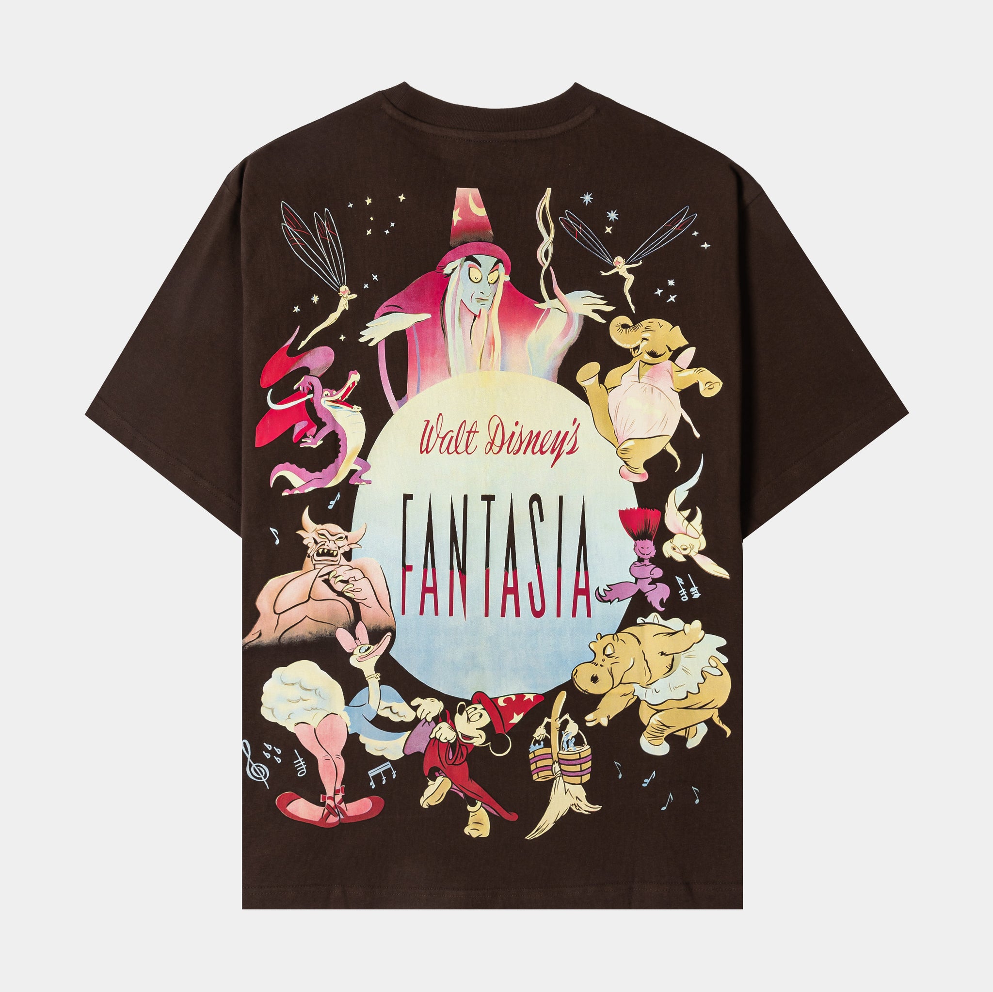 The Disney Fantasia by Shoe Palace Fairy and Friends Men’s Short Sleeve Shirt brings classic animation to life with a whimsical, vintage-inspired design. The front keeps it subtle with a small Fantasia graphic, while the back bursts with color, showcasing fairies and beloved characters from the film surrounding the iconic Fantasia emblem. Crafted from soft, comfortable fabric, this tee blends nostalgia, artistry, and everyday wearability for any Disney fan.