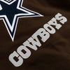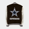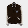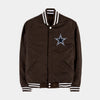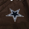 Dallas Cowboys Reversible Letterman jacket with Faux Leather sleeves in brown-white with nylon lining and embroidered logos.