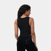 Our elongated crewneck tank in a thick rib features our iconic rhinestone logo in the center. Perfect as a layering piece or on its own.