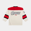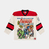 Bring heroic energy to the rink or the streets with the Marvel by Shoe Palace The Avengers Hockey Men’s Jersey. Designed in a bold white and red colorway, this 100% polyester jersey blends breathable comfort with all-star Marvel style. Featuring striking Avengers graphics and authentic hockey-inspired details, it’s the ultimate fan piece for those ready to lead like a legend.