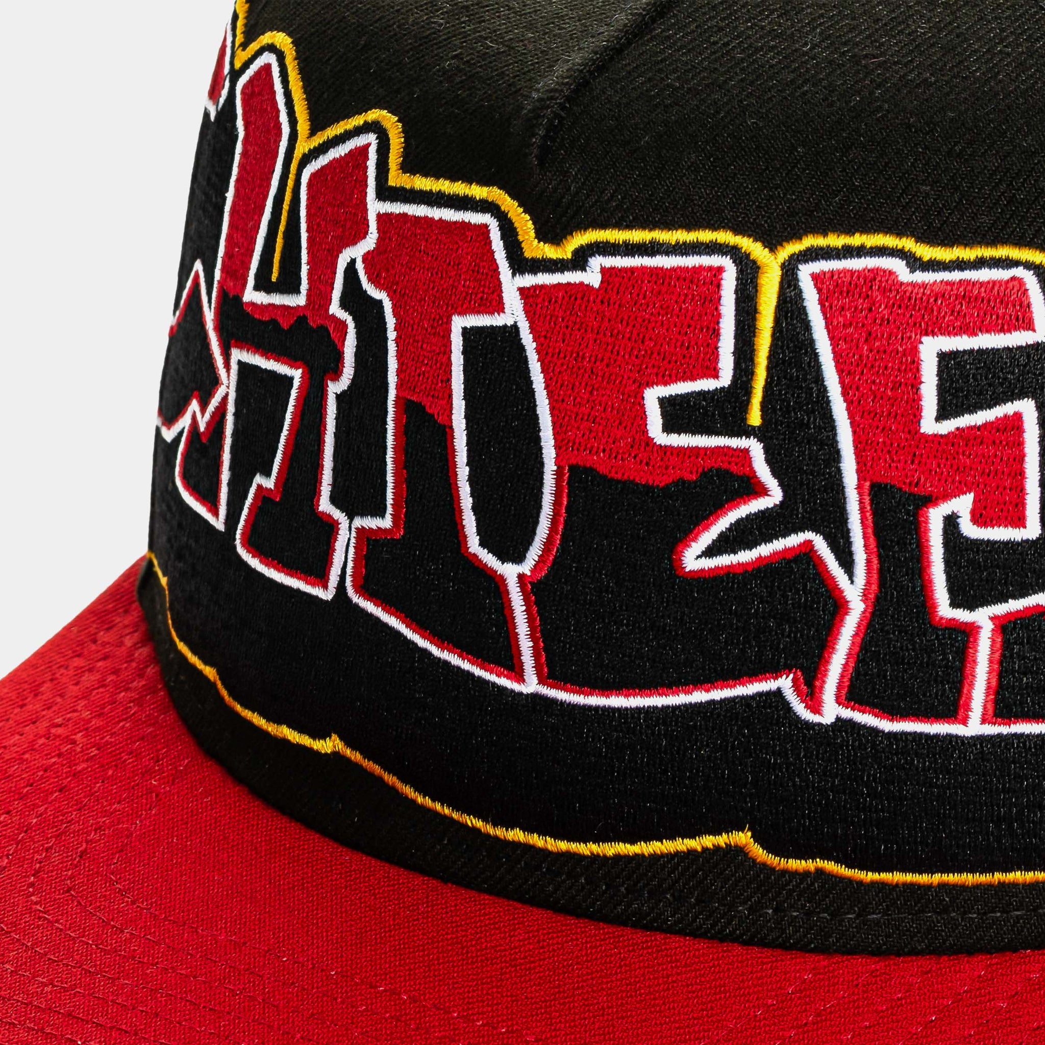 Bring bold, old-school energy to your game-day fit with the Shoe Palace x New Era NFL 90s Graffiti Exclusive Kansas City Chiefs Snapback. Inspired by iconic ’90s street art, this snapback features oversized graffiti-style Chiefs lettering embroidered across the front, blending vintage NFL attitude with modern streetwear appeal. The structured crown and flat brim deliver a classic snapback silhouette, while the adjustable closure ensures a comfortable, customizable fit.