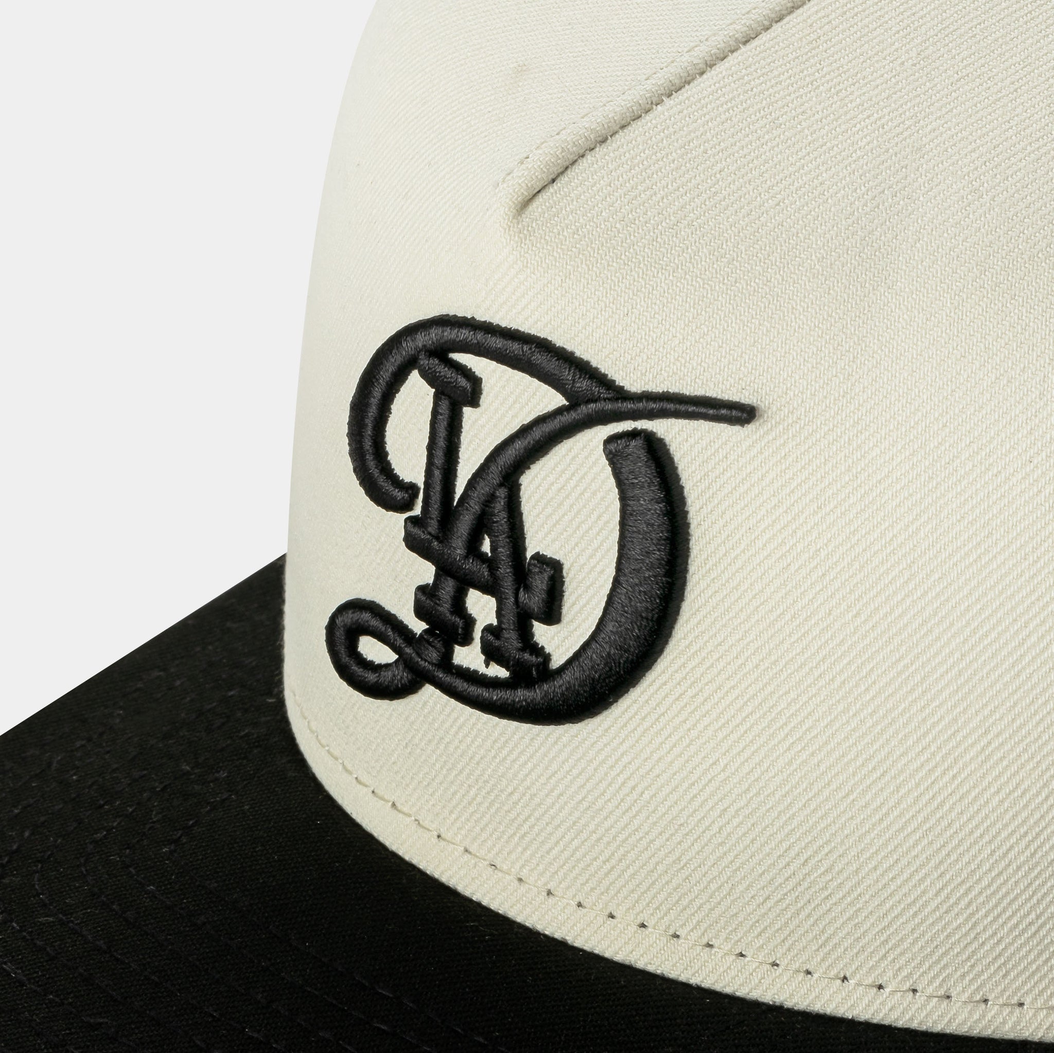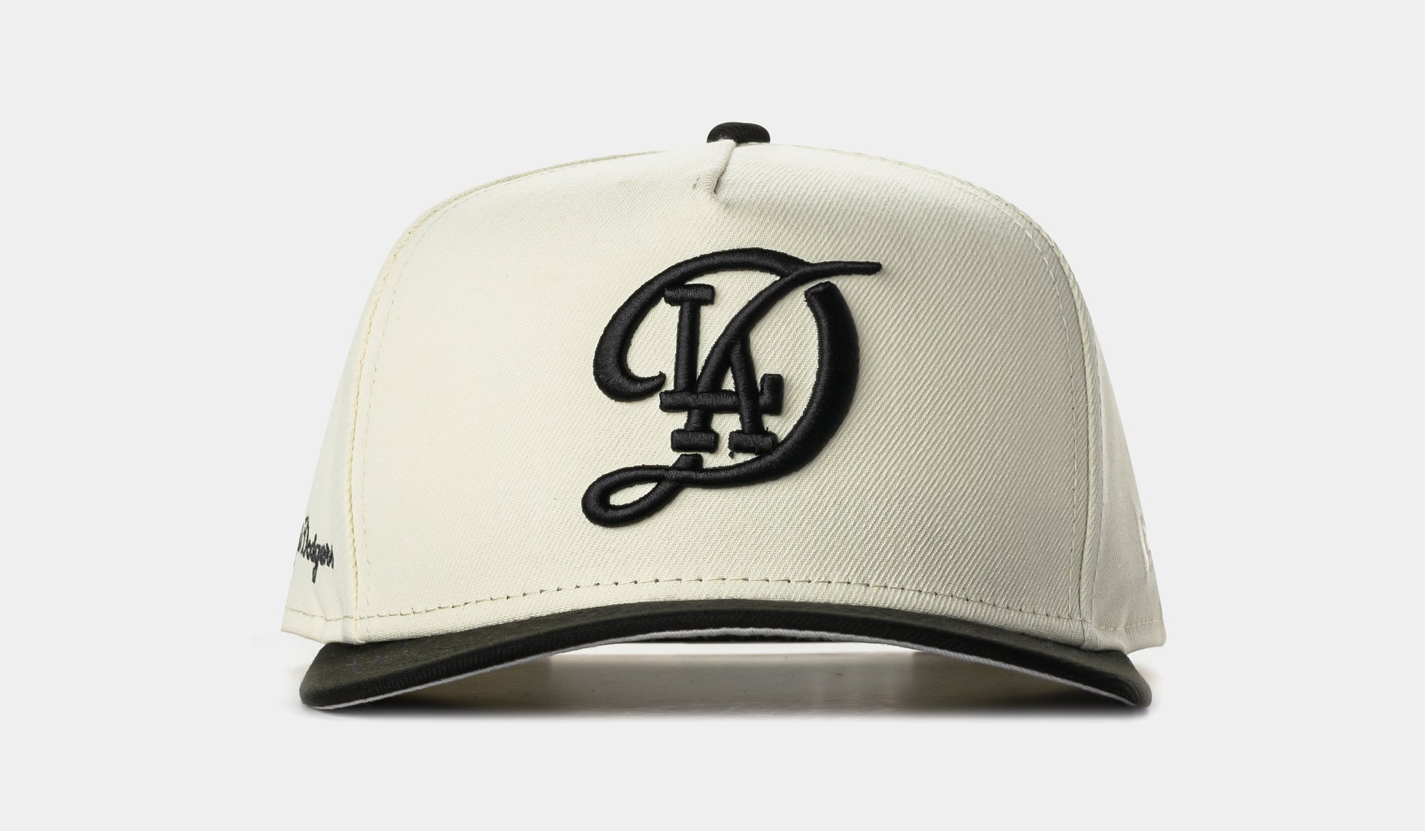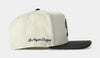 Rep your city in bold fashion with the Shoe Palace Exclusive Los Angeles Dodgers City 950AF Snapback. This clean two-tone design features a cream crown with a contrasting black visor, giving it a timeless and elevated look. The front showcases an oversized, embroidered interlocking LA logo in black — a refined nod to classic Dodgers pride.