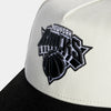 Rep the Garden with this Shoe Palace Exclusive New York Knicks 950AF Snapback. Featuring a bold monochrome Knicks logo embroidered across a cream crown, this cap blends classic team heritage with a sleek, modern aesthetic. The contrasting black brim and adjustable snapback closure complete the look, delivering all-day comfort and standout New York pride.