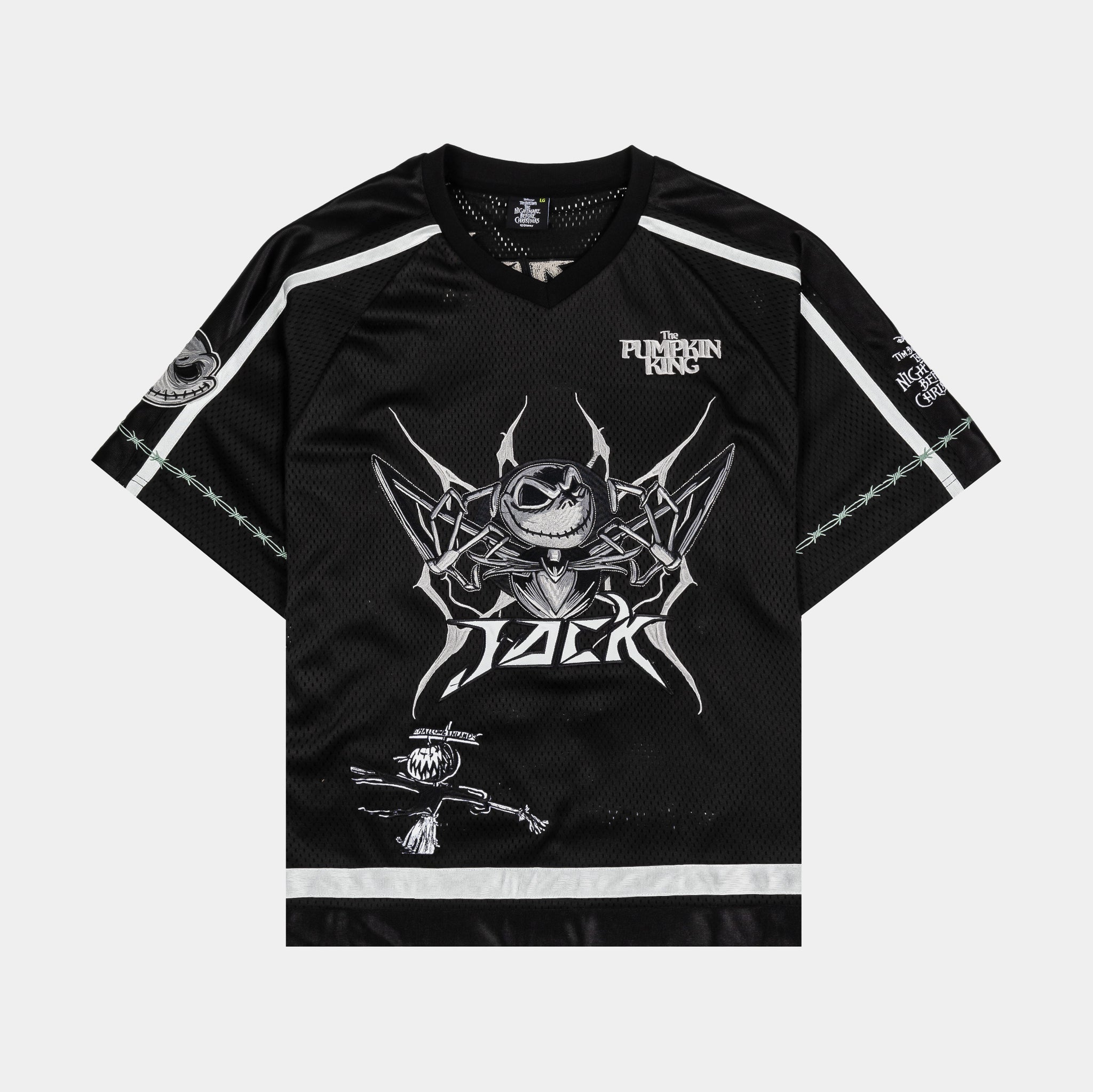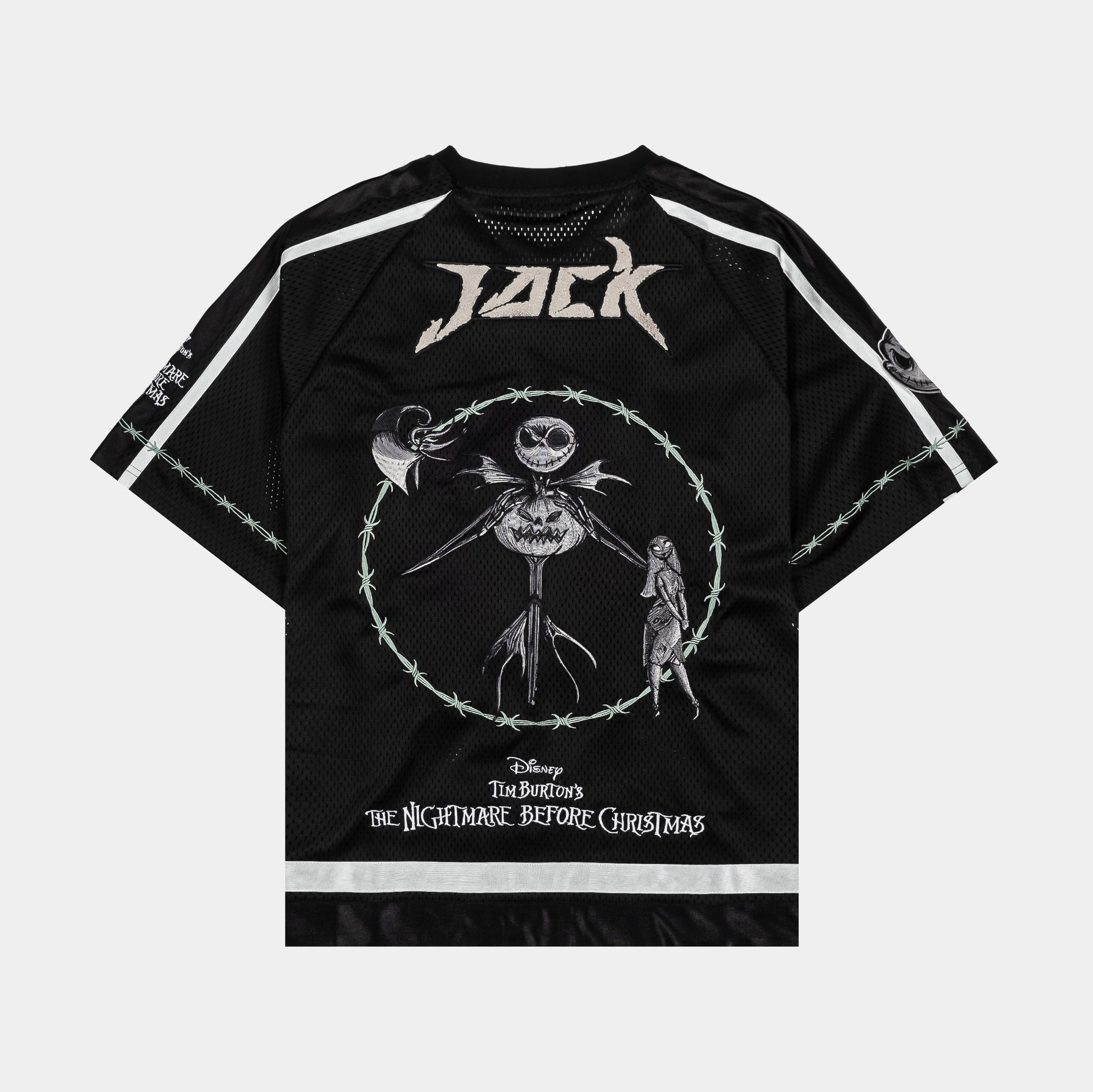 Celebrate the iconic Disney Tim Burton’s The Nightmare Before Christmas with this Jack Skellington mesh jersey from Shoe Palace. Designed with breathable mesh fabric, this jersey keeps you cool while showing off bold graphics of the Pumpkin King himself. Perfect for casual wear, layering, or adding a pop of Halloween-inspired flair to your wardrobe, it’s a must-have for fans of Tim Burton’s classic.