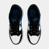 This offering of the Nike Dunk Low comes constructed in a full leather build with mesh tongues and lining. It features a White base with Black overlay, tongues, laces, and lining detailed with Blue Swooshes, overlays, heels, tongue branding, and insoles. A two-tone White midsole atop a Black rubber outsole completes the design.