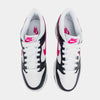 This Nike Dunk Low maintains its signature leather construction, providing comfort and breathability with toe box perforations, mesh tongues, and a soft inner lining. The shoe predominantly features a crisp White base, accentuated by Dark Obsidian eyestays, overlays, and a durable rubber outsole. What truly sets it apart are the vibrant Fierce Pink accents that grace the iconic Swoosh logos and various Nike branding elements such as the tongue tags, insoles, and embroidered heels. The design is rounded off with White tongues, laces, and a clean midsole.