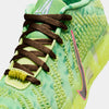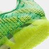 The Nike Ja 3 'Zombie' celebrates Halloween with a patterned bright green mesh upper, featuring monogram-pattern overlays that utilize Ja Morant's 'JA' logo. Outlined in crimson trim, a black vertical Swoosh on the lateral side panel extends into the neon green rubber cupsole, which houses full-length ZoomX foam cushioning with a midfoot shank for torsional rigidity. Unique details include fanged 'MORANT' lace dubraes and a sinister zombie graphic on the custom sockliner.
