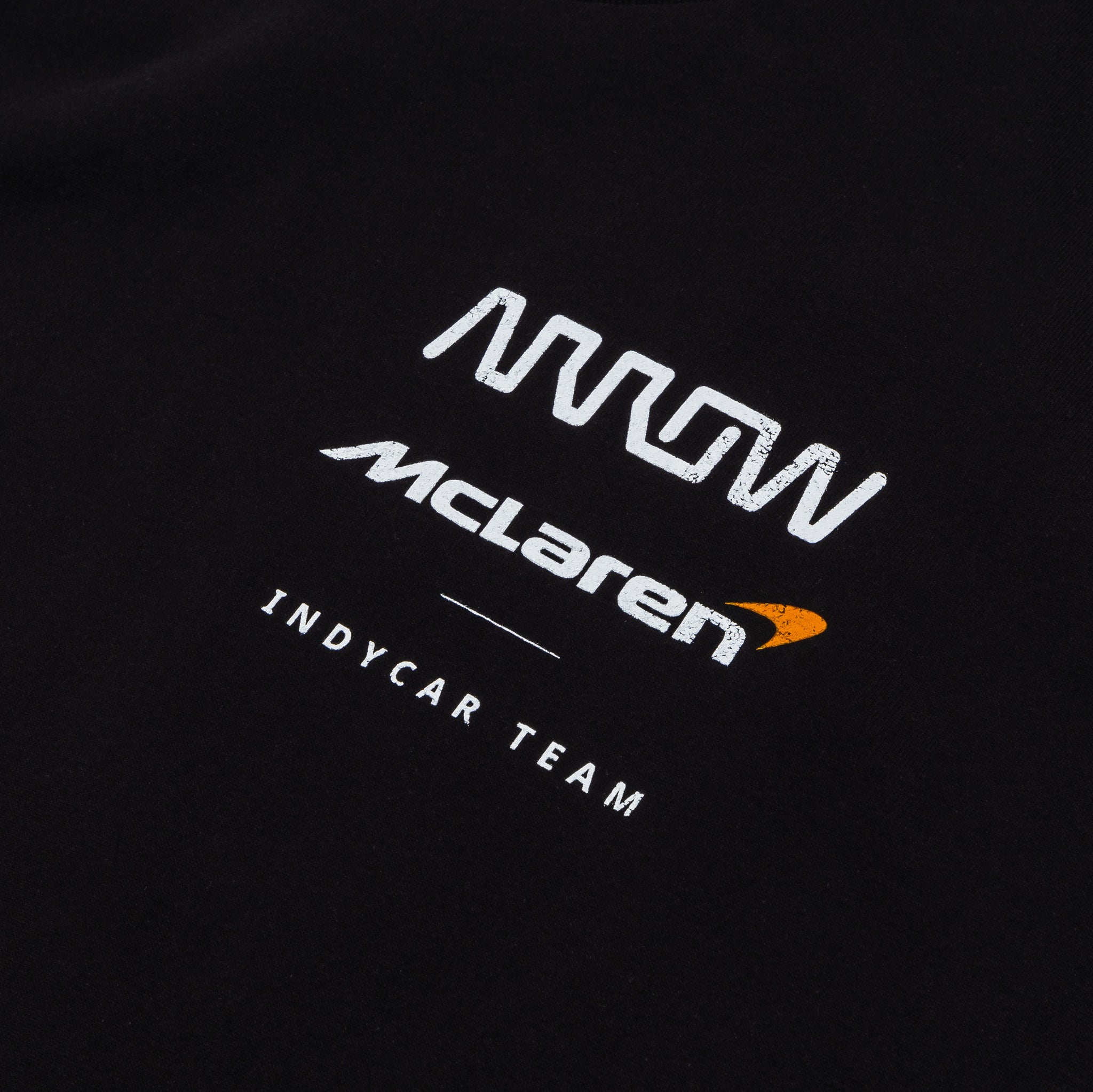 Show your support for the Arrow McLaren IndyCar Team with this bold graphic tee. Made from soft cotton, the shirt features a clean team logo print on the front chest and a striking race car graphic across the back, accented with McLaren’s signature papaya orange. The back design is finished with the motivational phrase “There is no Finish Line” in a sleek script style. Perfect for race days or everyday wear, this tee blends comfort with authentic team pride.