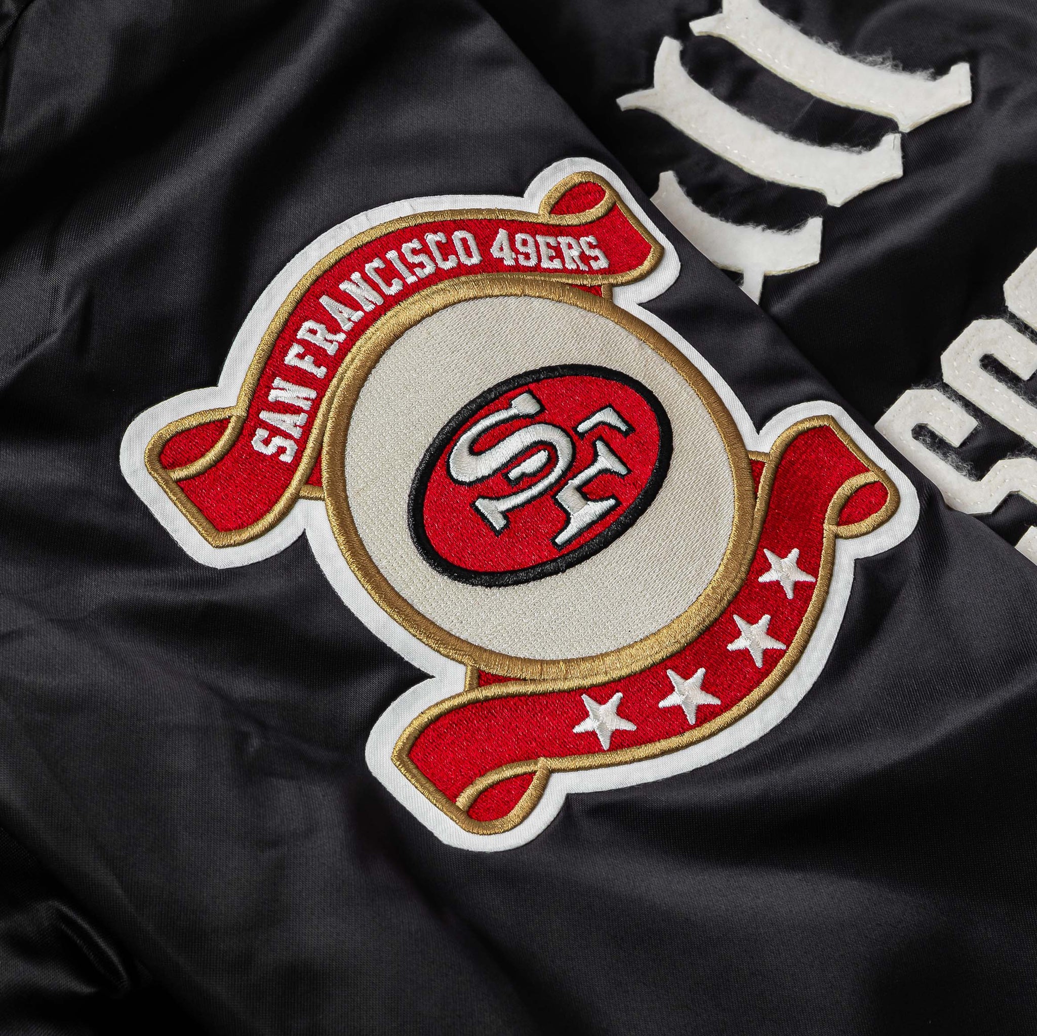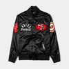 Rep your team with confidence in the Shoe Palace Exclusive San Francisco 49ers Original Satin Men’s Jacket. Crafted in a sleek black satin finish, this premium outerwear piece blends luxury and team pride with bold embroidered 49ers logos across the chest, sleeves, and back. The shiny satin fabric delivers a smooth, standout look that’s perfect for game days, streetwear fits, or everyday layering.